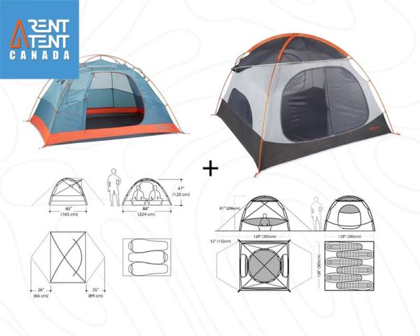 Our group tent package is perfect for groups, two couples, and families that need room and privacy, while still keeping setup quick!
