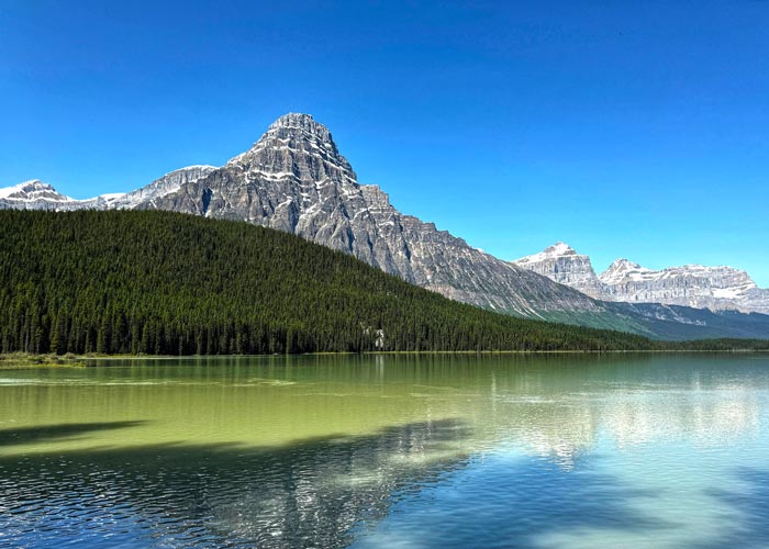 For first-come, first-served (FCFS) camping, our top pick within two hours of our location is Waterfowl Lakes Campground along the Icefields Parkway. The Parkway itself is rated as one of the most scenic drives in the world.